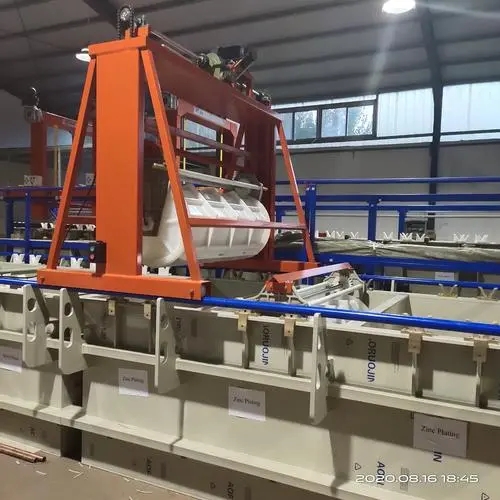 電鍍生產(chǎn)線的半自動生產(chǎn)線 半自動電鍍生產(chǎn)線適用于針對精密電子、小五金件的成批生產(chǎn)及大量生產(chǎn),產(chǎn)值大,經(jīng)濟效益好。該電鍍生產(chǎn)線是在生產(chǎn)線上設(shè)導(dǎo)軌,行車在導(dǎo)軌上運行從而輸送控件在鍍槽中進(jìn)行加工